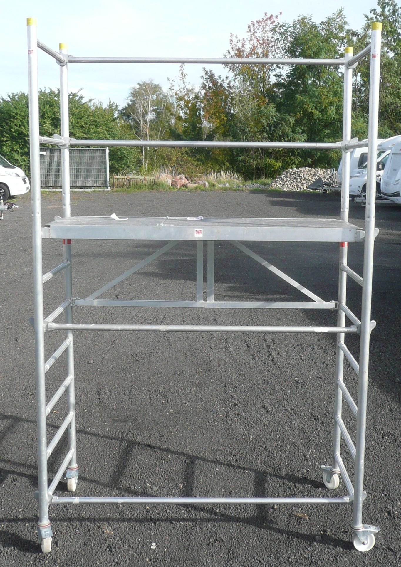 | Alu Fahrgerüst Boy 2 | Arbeitshöhe: bis 6 m möglich | E-Gewicht: ca. 40 -100 kg | B/L (m): 0,70 / 1,80 | Anfrage |