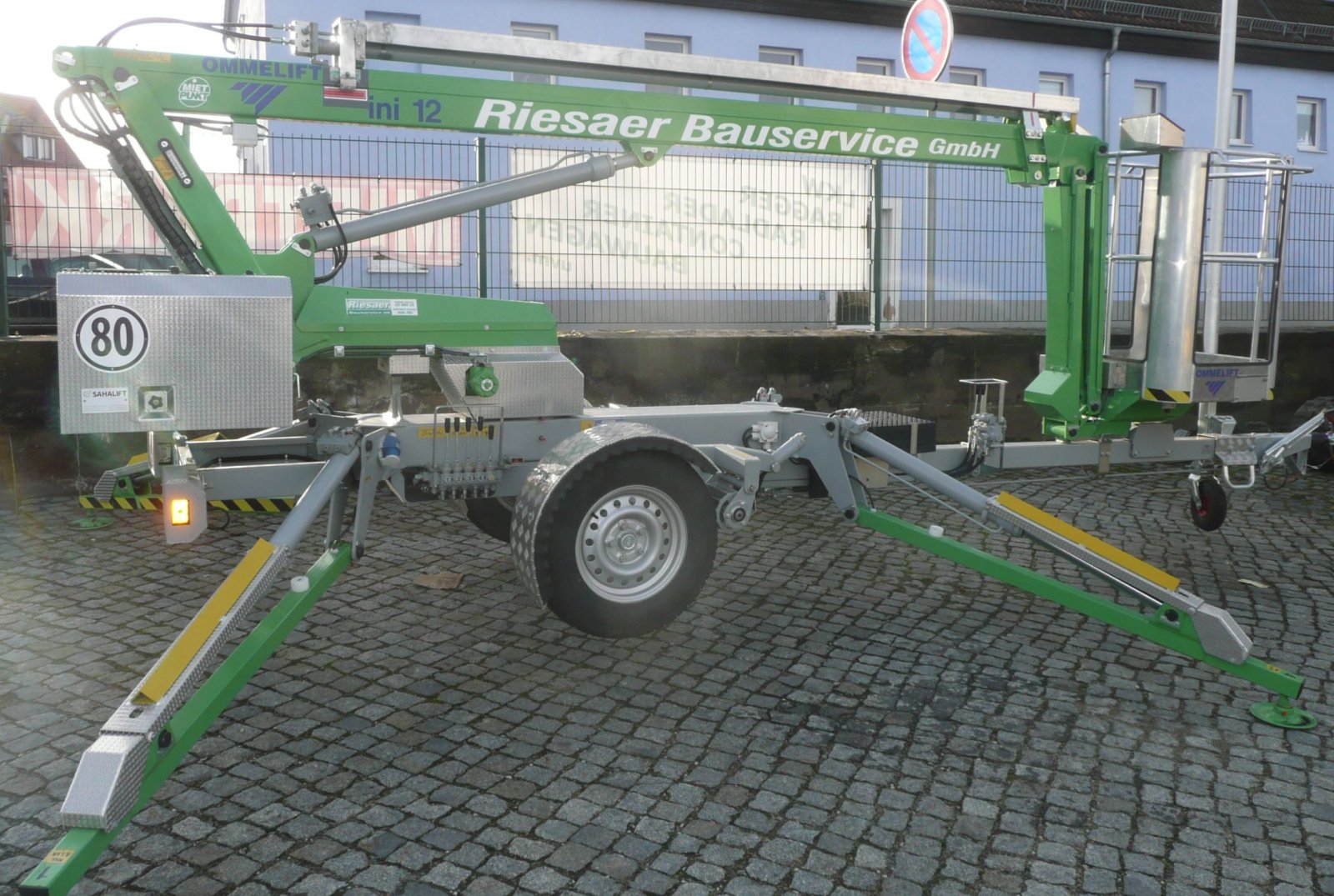 | Anhängerbühne Omme (12m - mini) | Arbeitshöhe: 12 m | E-Gewicht: 1,3 to | B/L (m): min. 1,00 / 6,05 | Anfrage |